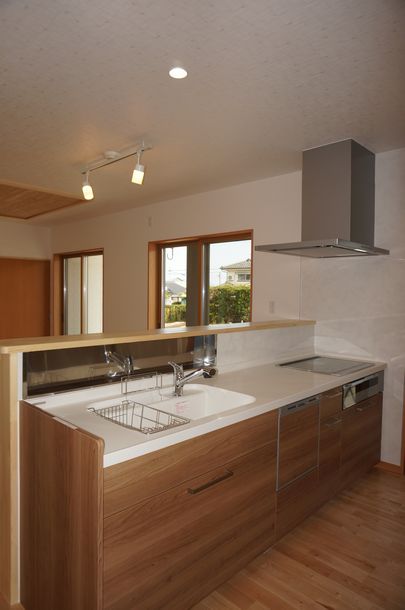 この建物には床下に高さが1.40mの床下収納庫(9畳大)があります。小屋裏収納と違い中廊下から簡単に入れるのでとても重宝しています。この上には子供室がありちょっとした階段を上ることで2階建ての気分を味わう事ができます。断熱はウレタンの吹付、サッシは複層Low-Eガラス、太陽光発電、LED照明ととてもECOな住まいとなりました。( 枕崎市 )